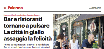Gds: “Palermo. Bar e ristoranti tornano a pulsare. La città in giallo assaggia la felicità”