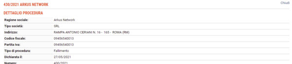 Game over per i fratelli Tuttolomondo. Il Tribunale Ordinario di Roma ha dichiarato il fallimento di Arkus Network, la società...