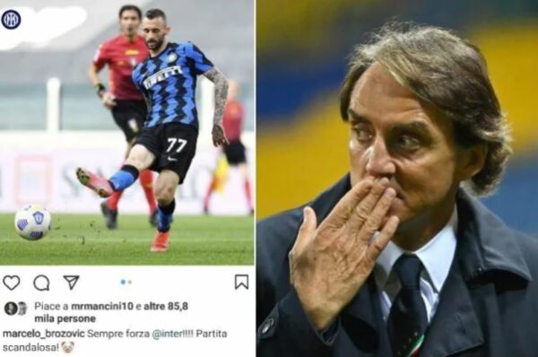 Juventus-Inter, Brozovic: “Partita scandalosa”. Il ct Mancini mette like al post del croato (FOTO)