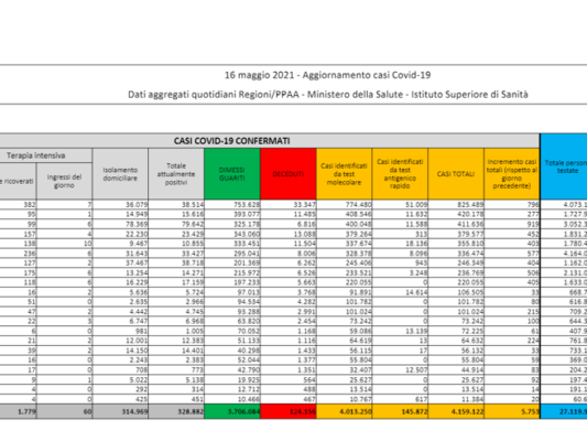 Coronavirus 16 maggio – Ecco il quadro riepilogativo dell’emergenza Covid in Sicilia nelle ultime 24 ore: il dato è aggiornato...