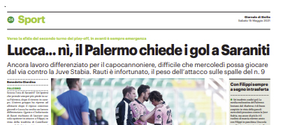 L'edizione odierna della "Gazzetta dello Sport" si sofferma sul reparto offensivo del Palermo. Sprint Saraniti per una maglia da titolare...