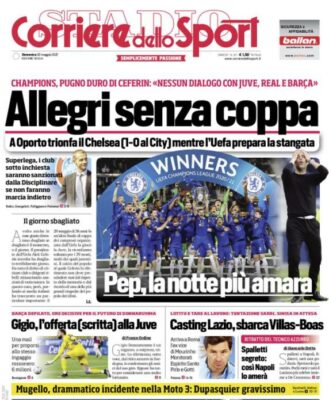 La prima pagina del "Corriere dello Sport" si sofferma sulla finale di Champions League. Il Chelsea si impone 1-0 e...