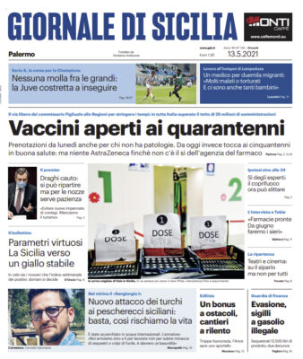 Prima pagina Giornale di Sicilia: “Vaccini aperti ai quarantenni. Ipotesi sino alle 24. Sì degli esperti, il coprifuoco ora può slittare”
