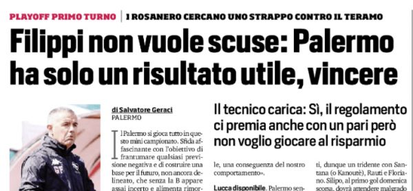 L'edizione odierna del "Corriere dello Sport" si sofferma sulla sfida fra Palermo e Teramo. Filippi si lancia nell'appuntamento più importante...