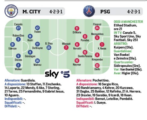 Corriere dello Sport: “Champions League. Stasera Manchester City-Psg. Le probabili formazioni”