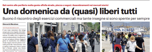 L'edizione odierna del "Giornale di Sicilia" si sofferma sulla domenica da (quasi) liberi tutti a Palermo. Una zona arancione orientata...