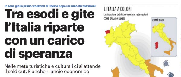 L'edizione odierna del "Giornale di Sicilia" si sofferma sulla riapertura dell'Italia. Primo weekend festivo in "semi-libertà", che segnerà un test...