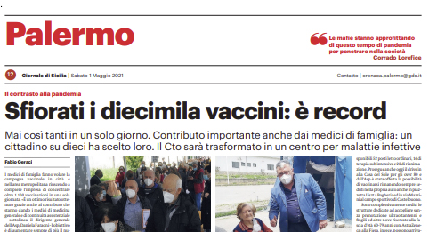 L'edizione odierna del "Giornale di Sicilia" si sofferma sulla campagna vaccinale in Sicilia. E' record di vaccinazioni: il 29 aprile...