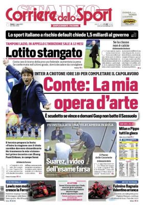 L'edizione odierna del "Corriere dello Sport" si sofferma sulla sfida fra Crotone e Inter. Calcio d'inizio oggi alle 18. In...