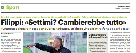 L'edizione odierna del "Giornale di Sicilia" riporta le dichiarazioni di Giacomo Filippi, allenatore del Palermo, in vista della sfida contro...