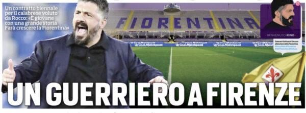 L'edizione odierna del "Corriere dello Sport" si sofferma sull'arrivo dell'ex rosa Gattuso sulla panchina della Fiorentina. Due gli anni di...