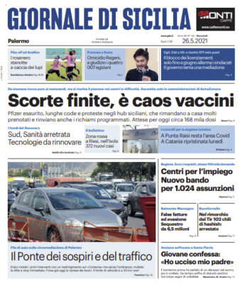 La prima pagina del "Giornale di Sicilia" si sofferma sulla campagna vaccinale in Sicilia. Pfizer esaurito, lunghe code e proteste...