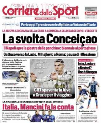 L'edizione odierna del "Corriere dello Sport" si sofferma sul valzer delle panchine in Serie A. Sergio Conceição si prenderà il...