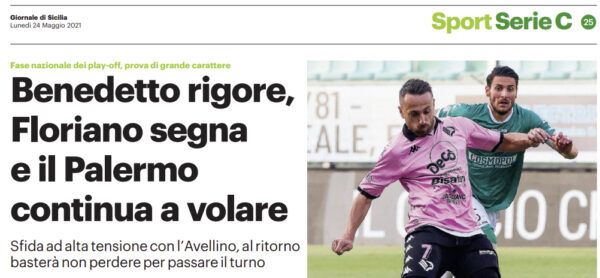 L'edizione odierna del "Giornale di Sicilia" esalta il successo del Palermo nella gara di andata della fase nazionale dei playoff....