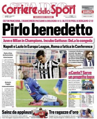 La prima pagina del "Corriere dello Sport" si sofferma sulla corsa Champions in Serie A. Alla fine sorridono Juventus e...