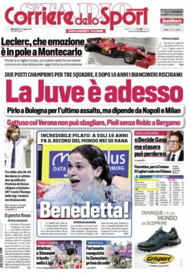 Corriere dello Sport: “Serie A, due posti ancora da assegnare, una sola partita a testa. Oggi sapremo chi tra Milan, Napoli e Juventus resterà fuori dal torneo più importante”