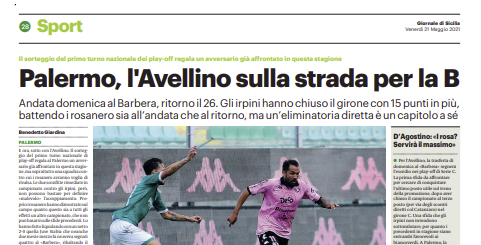 L'edizione odierna del "Giornale di Sicilia" si sofferma sulla sfida fra Palermo ed Avellino. Le due sconfitte rimediate in campionato...