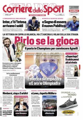 La prima pagina dell'edizione odierna del "Corriere dello Sport" si sofferma sulla Serie A. Pirlo se la gioca e tenta...
