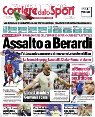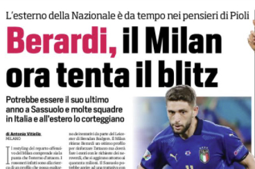 La prima pagina dell'edizione odierna del "Corriere dello Sport" si sofferma sull'assalto a Berardi. Leicester e Milan hanno messo nel...