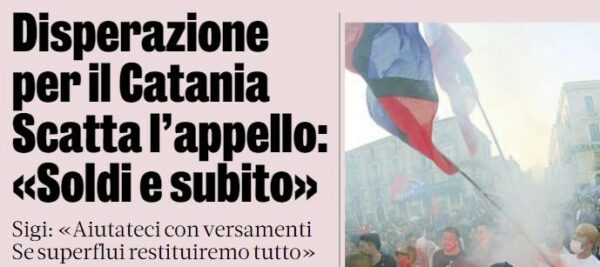 Appello della disperazione per il Catania come riporta l'edizione odierna de "La Gazzetta dello Sport". Il Catania ha bisogno di...