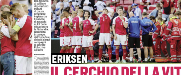 Sorrentino e il “muro” umano a protezione di Eriksen: “Questi uomini hanno già vinto” (FOTO)