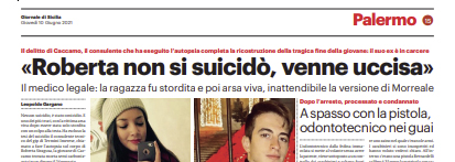 L'edizione odierna del "Giornale di Sicilia" parla del caso di Roberta Siragusa. Nessun suicidio, è stato omicidio. E uno dei...