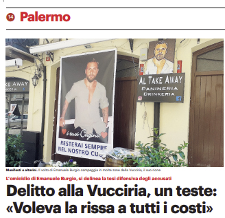 L'edizione odierna del "Giornale di Sicilia" torna sull'agguato che ha spezzato la vita ad Emanuele Burgio nel quartiere Vucciria di...