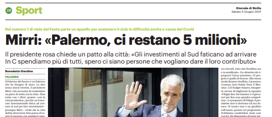 L'edizione odierna del "Giornale di Sicilia" si sofferma sulla conclusione degli allenamenti in casa Palermo. I giocatori rosa si danno...