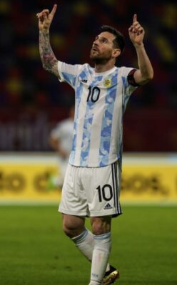 Dopo aver segnato il calcio di rigore ieri sera contro il Cile, Leo Messi ha esultato in maniera molto simile...