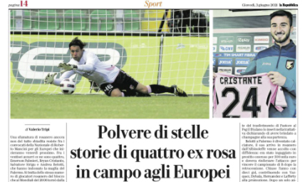 L'edizione odierna di "Repubblica" parla dei tanti ex rosanero presenti in Nazionale. Una sfumatura di rosanero ancora non del tutto...