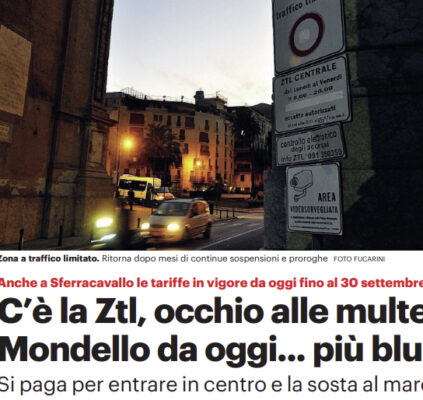 L'edizione odierna del "Giornale di Sicilia" si sofferma sul ritorno della ZTL a Palermo. Sarà attiva dalle 8 alle 20...
