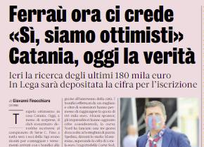 L'edizione odierna della "Gazzetta dello Sport" si sofferma sulla questione iscrizione per il Catania. Trapela ottimismo, anche grazie alle parole...
