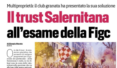 L'edizione odierna del "Corriere dello Sport" si sofferma sul trust della Salernitana. La FIGC valuta attentamente. Sfogliando le carte, gli...