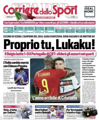 La prima pagina del "Corriere dello Sport" si sofferma sulla vittoria del Belgio sul Portogallo. Saranno gli uomini di Martinez...