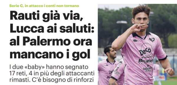 Gds: “In attacco i conti non tornano. Rauti già via, Lucca ai saluti. Al Palermo ora mancano i gol. C’è bisogno di rinforzi”