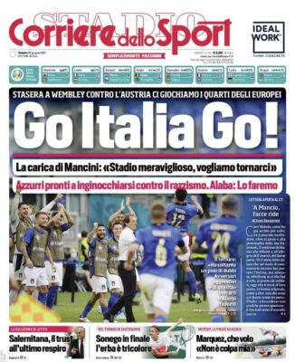Corriere dello Sport: “Euro 2020. Stasera Italia-Austria. Azzurri pronti a inginocchiarsi”