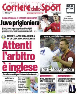 L'edizione odierna del "Corriere dello Sport" parla di euro 2020. Scelta compiuta dalla Uefa (Roberto Rosetti) a proposito dell’arbitro che...