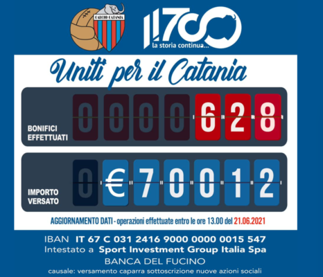 Prosegue la raccolta fondi per l'iscrizione del Catania in Serie C. Questo il post social del club: