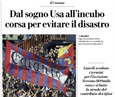 L'edizione odierna de "La Repubblica" si sofferma sul futuro del Catania. Sei giorni per salvare 75 anni di storia. E'...