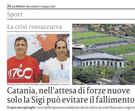 L'edizione odierna de "La Sicilia" analizza il futuro del Catania. Secondo il quotidiano soltanto la Sigi può evitare il fallimento...