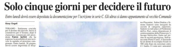 L'edizione odierna del quotidiano "La Città" si sofferma sul futuro del Teramo. Inizia il countdown dopo il clamoroso comunicato del...
