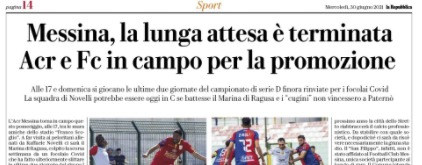 L'edizione odierna de "La Repubblica" si sofferma sulla sfida fra ACR e FC Messina. Si torna in campo per la...