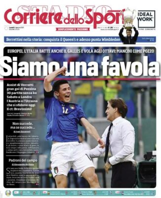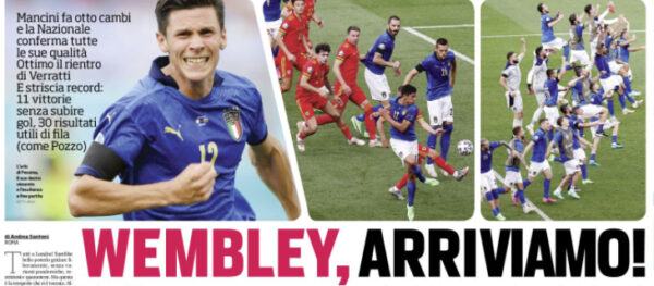 Corriere dello Sport: “Wembley arriviamo! Galles battuto con un gol di Pessina, azzurri primi. Sabato gli ottavi a Londra con Austria o Ucraina”