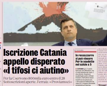 L'edizione odierna della "Gazzetta dello Sport" si sofferma sulla situazione societaria del Catania. Non c'è alternativa per il club rossazzurro....