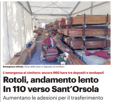 L'edizione odierna del "Giornale di Sicilia" si sofferma sull'emergenza relativa al cimitero dei "Rotoli" a Palermo. Sono 960 le bare...