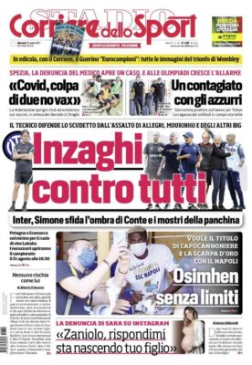 Prima pagina Corriere dello Sport: “Simone Inzaghi contro tutti”