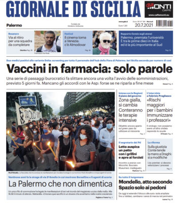 Prima pagina Giornale di Sicilia: “Vaccini in farmacia, solo parole. La Palermo che non dimentica”