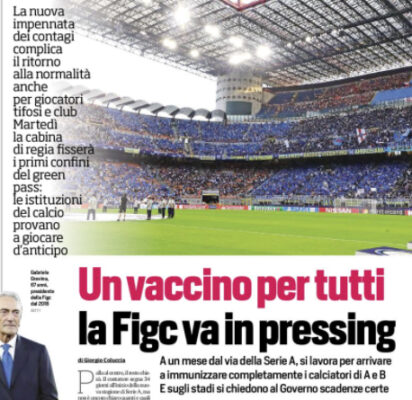 L'edizione odierna del "Corriere dello Sport" si sofferma sulla nuova stagione calcistica. La FIGC va in pressing per immunizzare completamente...
