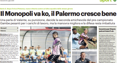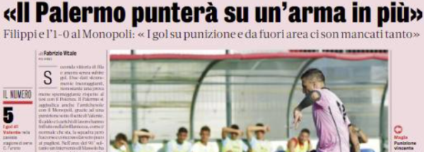 L'edizione odierna del "Giornale di Sicilia" si sofferma sul successo del Palermo nell'amichevole contro il Monopoli. I rosa si impongono...