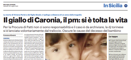 L'edizione odierna del "Giornale di Sicilia" si sofferma sul mistero della morte di Viviana Parisi e del piccolo Gioele. La...